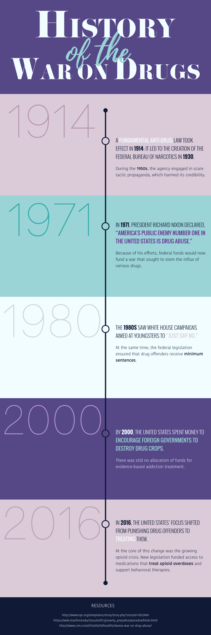 President Richard Nixon had a lofty goal of eradicating addiction with a war on drugs. Fast forward from 1969 to today, and there’s little change. In fact, drugs still wreak havoc. What are some of the milestones along the way?